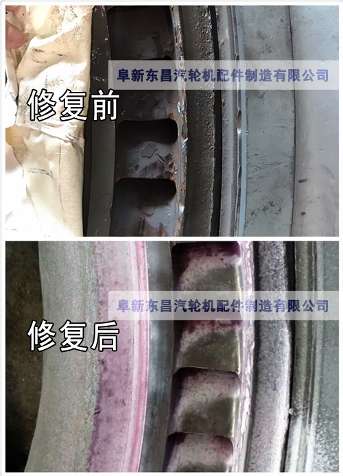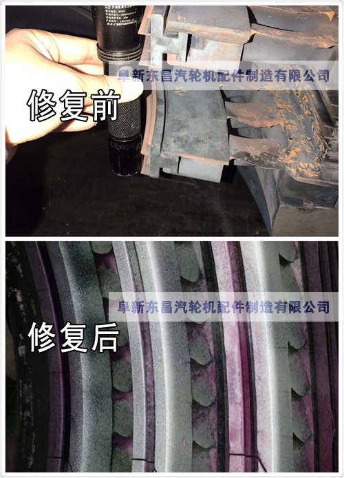 阜新東昌汽輪機(jī)配件制造有限公司高壓隔板噴嘴、靜葉片,修復(fù)前和修復(fù)后的對比圖。